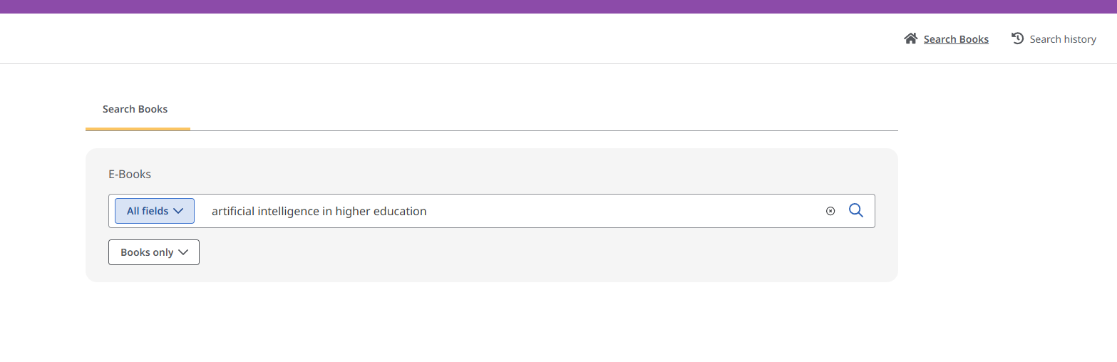 You may use the search box on E-Books to conduct quick searches for known e-book titles or keywords.